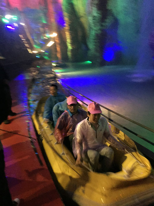 隨后我們乘觀光車來到大裂谷溶洞漂流,觀看溶洞乘坐刺激的漂流,裂谷與地下溶洞緊密相連,整體觀光長(zhǎng)度達(dá)6000余米,洞內(nèi)鐘乳石、石花、石柱、石筍、石幔、石瀑遍布其中,形成了一幅幅神奇與美妙的畫卷,洞內(nèi)依托豐富的地下水資源,打造的4000米地下暗河漂流,現(xiàn)今為亞洲最長(zhǎng)地下漂流項(xiàng)目,水道蜿蜒曲折,驚險(xiǎn)刺激。進(jìn)入水流,乘著氣艇順流而下,汽艇左沖右突,時(shí)而緩慢悠揚(yáng),時(shí)而快如流星,我們的心情也驟然緊張起來。眼看著又一個(gè)水流,大家更是緊張的抓緊手柄迎接急流。很是刺激!